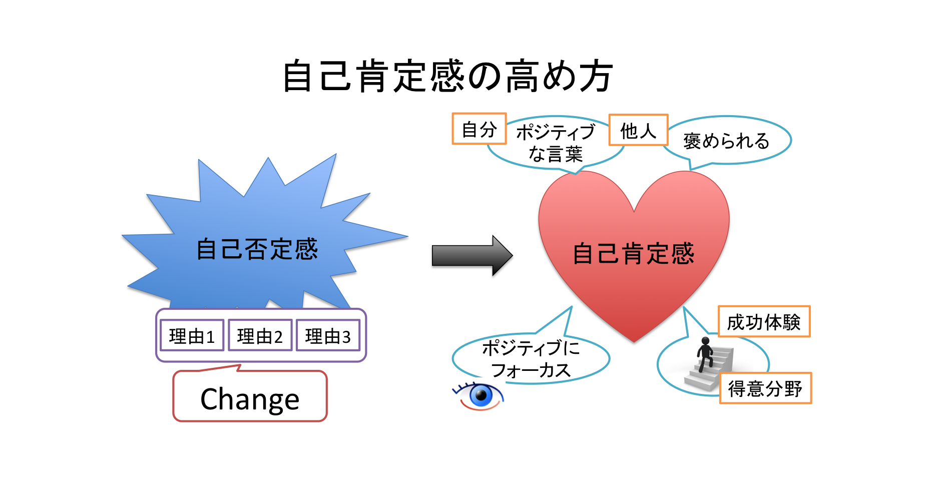 あとは、日常生活でできるだけ肯定的なセルフイメージを作り出すような仕掛けが必要です。