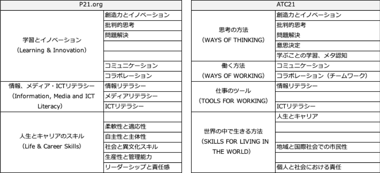 こうして2つの21世紀型スキルを比べてみると極めて近いことが述べられていることが分かります。