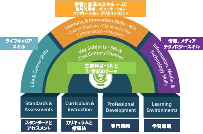 P21(Partnership for 21st Century Skills)とは2002年にアメリカで設立された非営利団体です。全ての子どもたちが21世紀に相応しい教育を受けられるように、とマイクロソフト、インテル等ICT企業、アメリカ教育省、教育団体の連携によって生まれました。