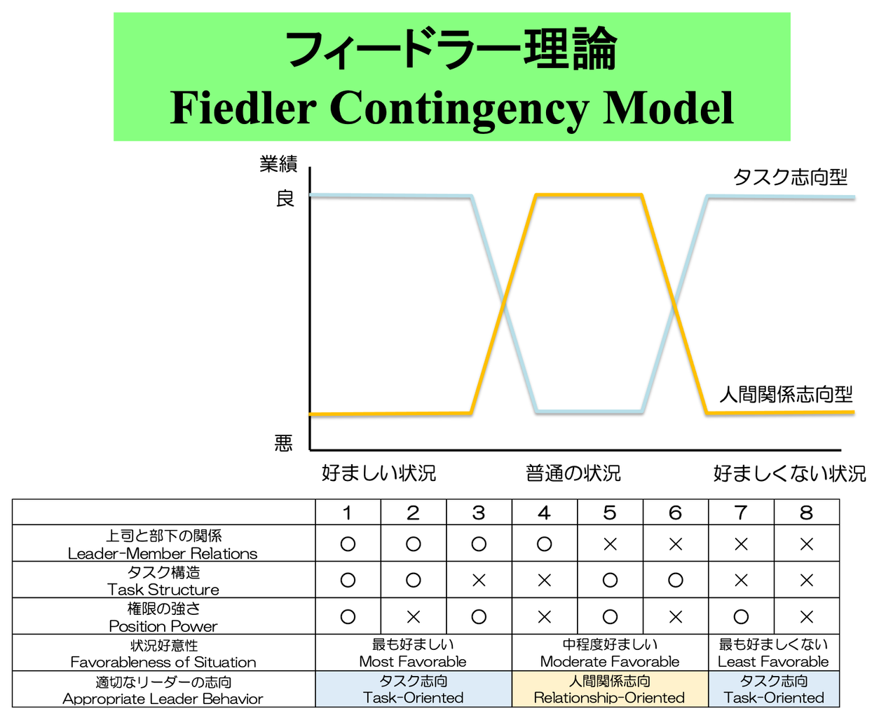 状況が良い時と悪い時はタスク志向型のリーダーシップが効果的であることが分かります。