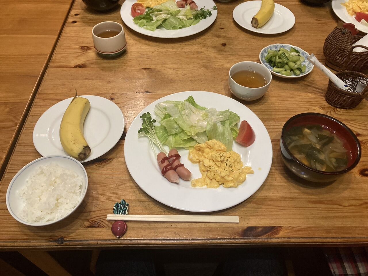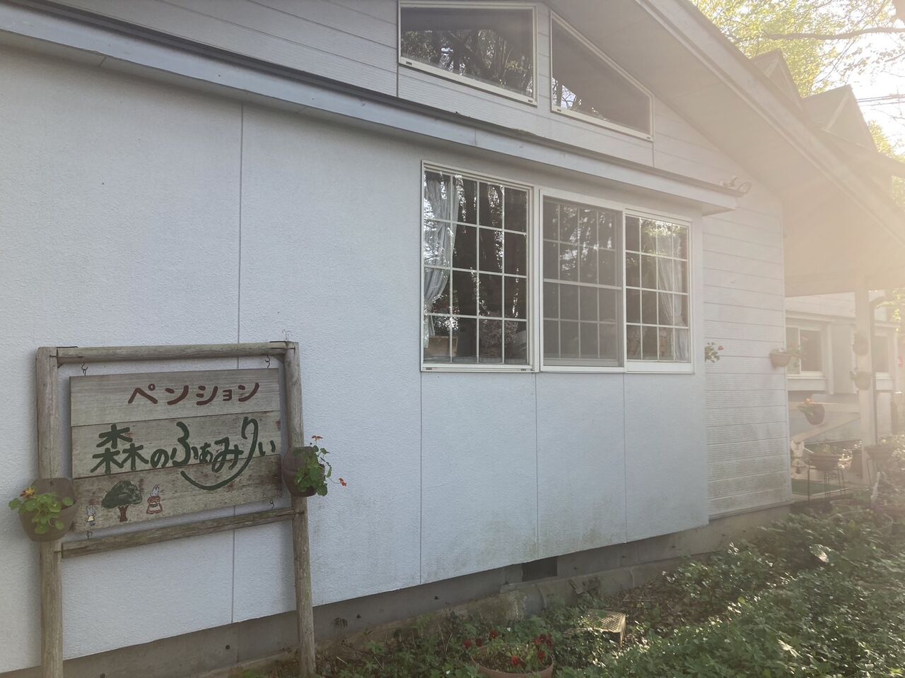 今回一緒に参加する大学院仲間のヤスさん、雄也さんとペンション「森のふぁみりぃ」に前泊。