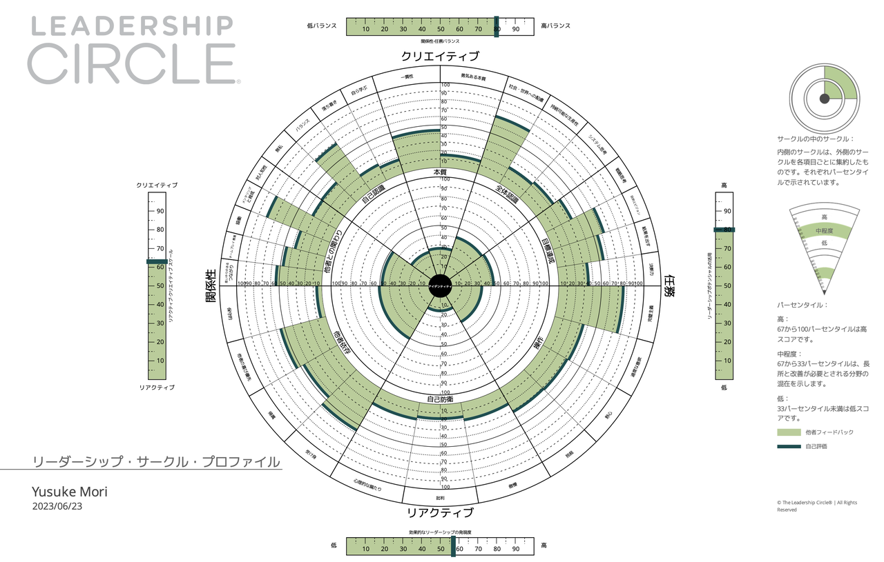 タスクを行う際のクリエイティブ(自己主導的)な能力や、求められるパフォーマンスに向けて自分や他者を「押し進める」リアクティブ(反応的)なスタイルが現れます。