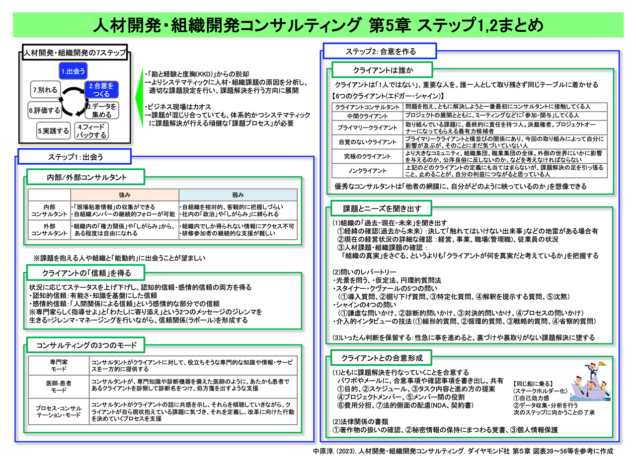 人材開発・組織開発コンサルティング、第1〜4章に続き、第5章をまとめます。
