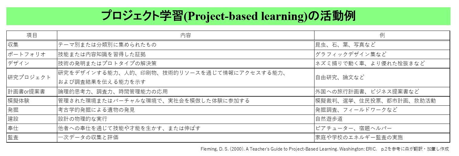 これらの活動例を参考に各科目を掛け合わせると、色々な科目別PBL案が作成できそうです。