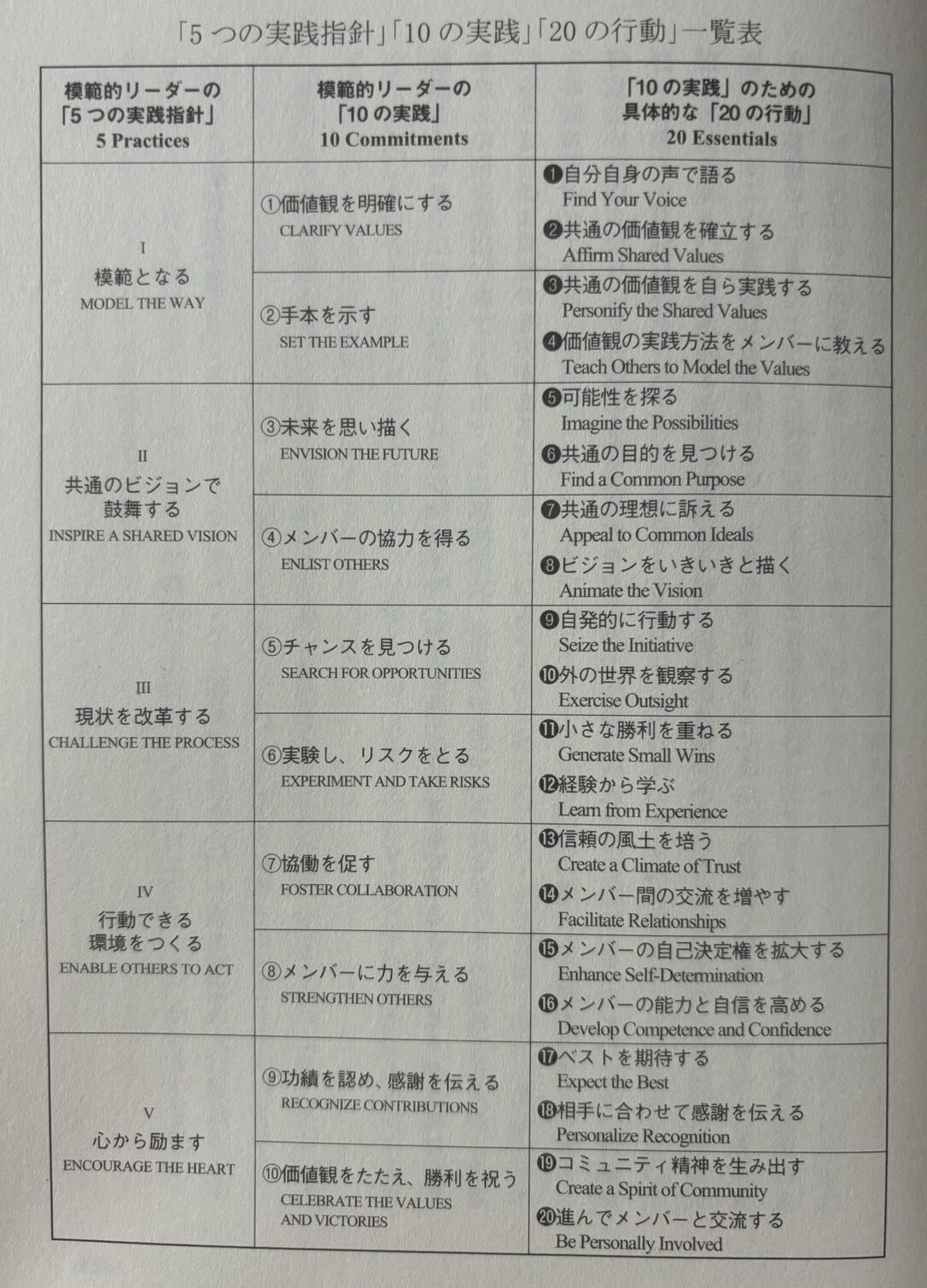 提唱者であるKouzes & Posnerは、30年以上にわたる継続的な研究と何千もの事例研究を経て、優れたリーダーに共通する行動パターンを「模範的リーダーの5つの実践指針」としてまとめました。