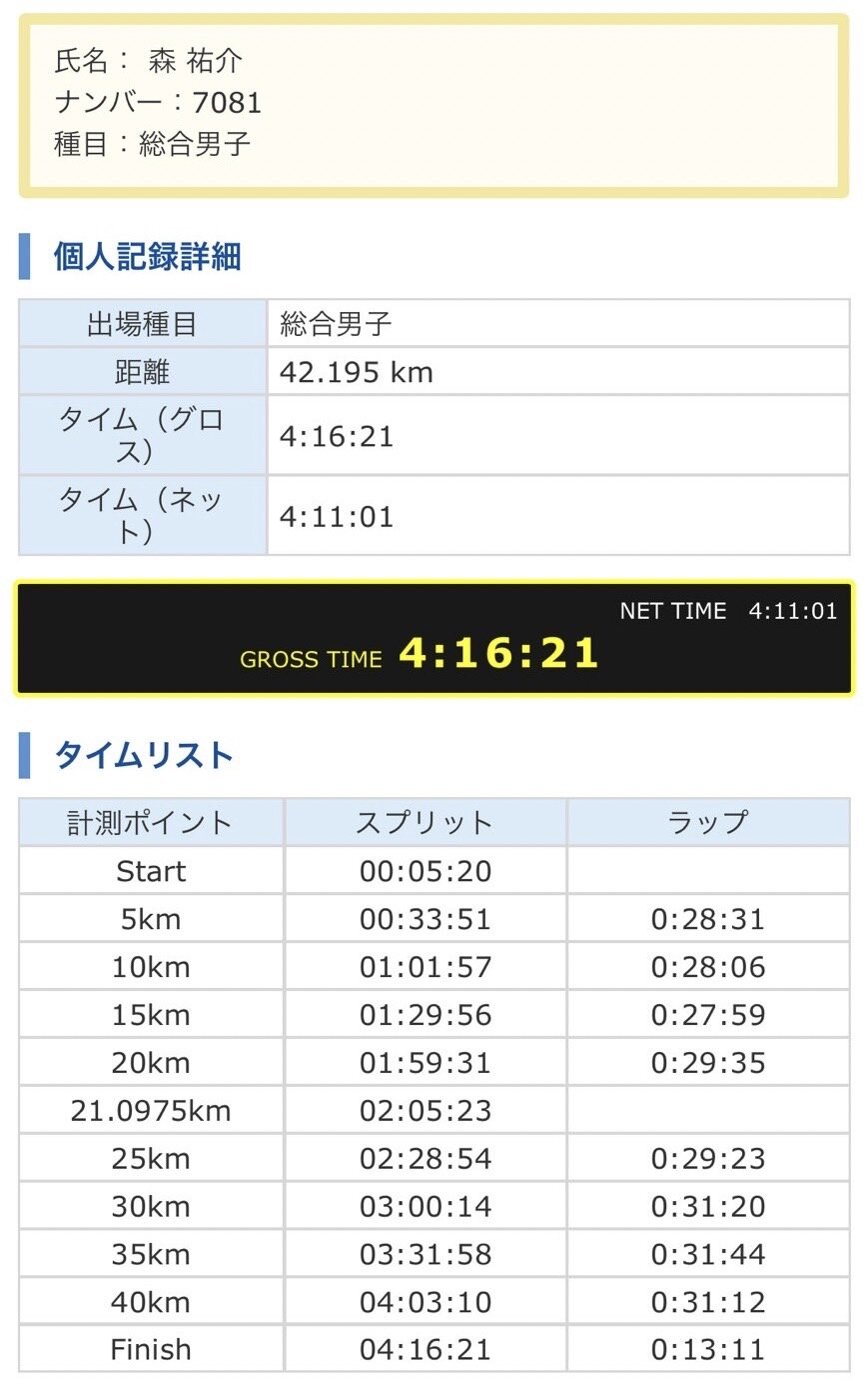 3時間50分28秒(2017年の大阪マラソン)の自己ベストには届きませんでしたし、サブ4(4時間切り)も叶いませんでしたが、今の自分としてはベストを尽くせたと思っています。