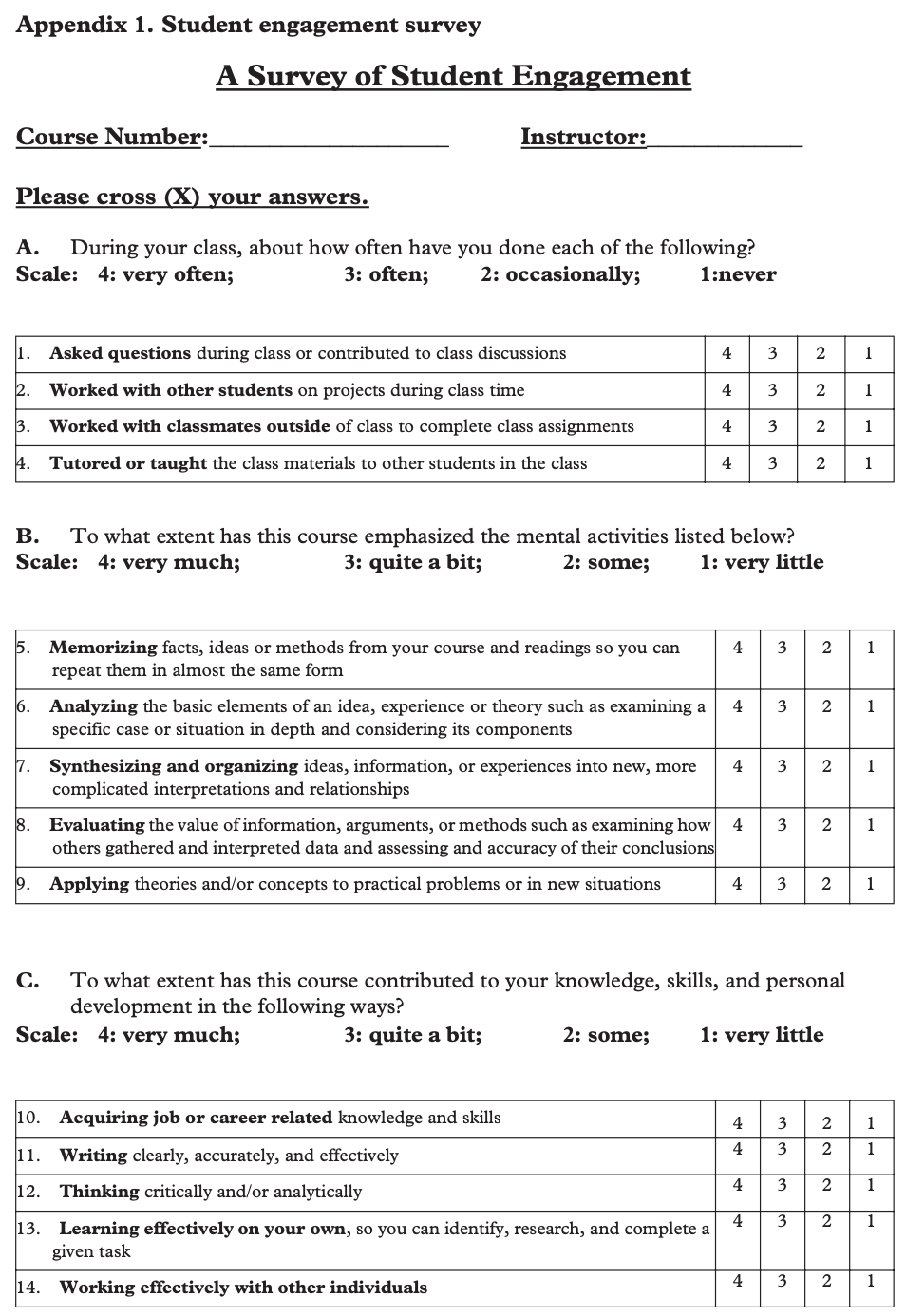 RQ3:NSSEのオリジナル調査から、個々の授業における学生のエンゲージメントを測定し、その結果をNSSE調査の関連質問と比較できるようなシンプルな尺度を開発できるか?
