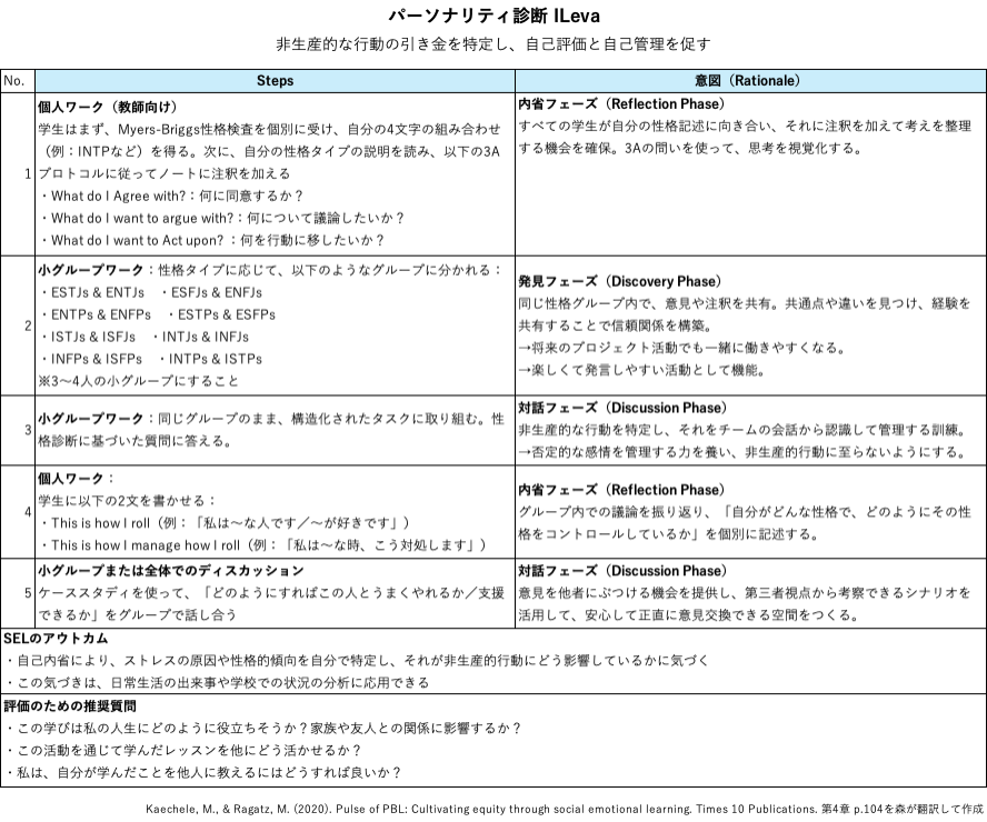 ・Personality Diagnostic ILevaにおける生徒の振り返りプロセスを活用し、各チームの「グループ契約(Group Contract)」を完成