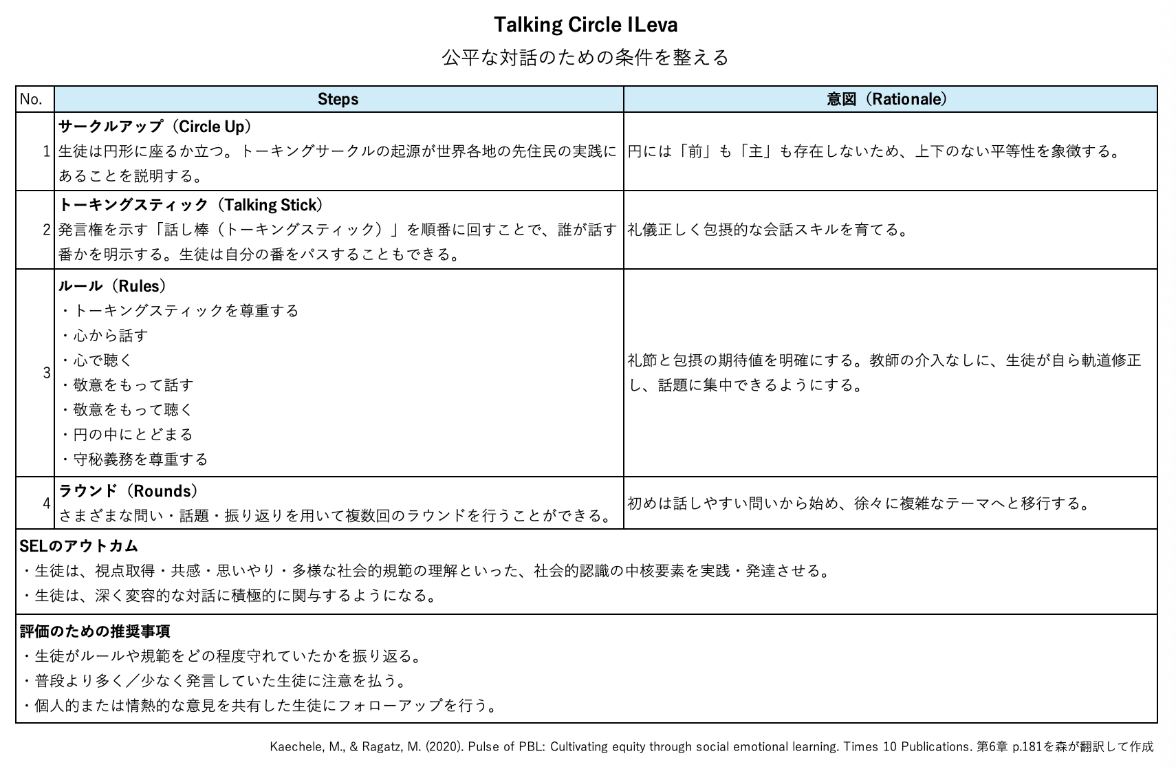 ・生徒たちがトーキング・サークルに慣れてきたら、成熟度に応じて適切なバリエーションを追加可能