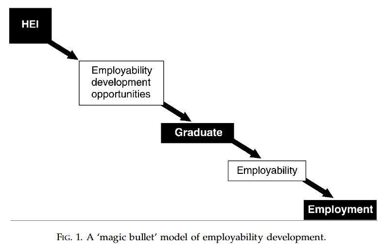 ・このモデルでは、「大学がエンプロイアビリティを育成する機会を提供しさえすれば、卒業生は就職できる」と前提としている(Figure 1)